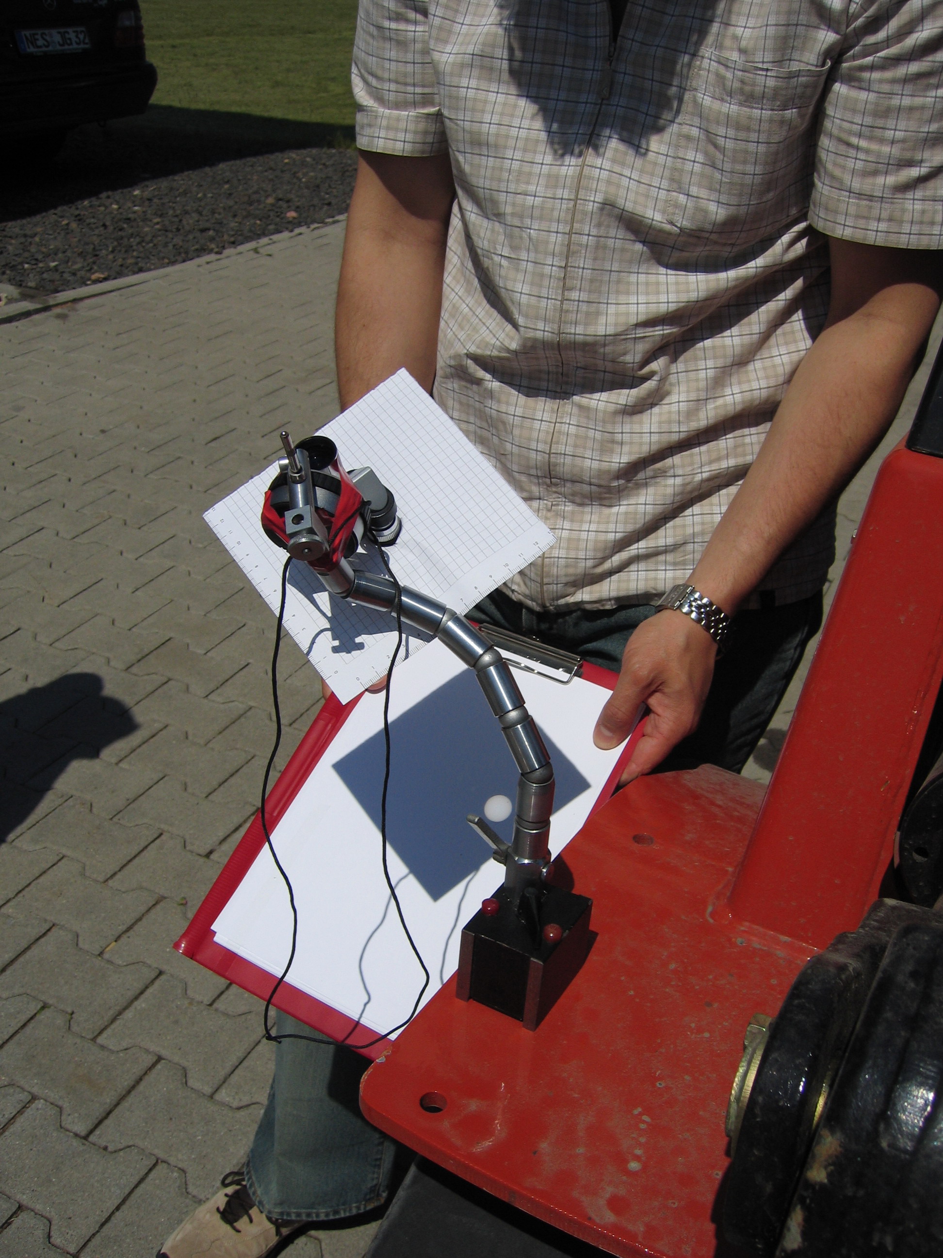 Mit Hilfe eines Meßuhrenhalters und etwas Isolierband befestigen wir ein kleines Fernrohr ,